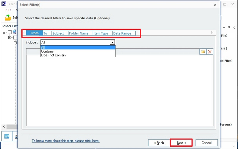 Step 6: Apply the filters accordingly to convert specific OST data. Click Next.