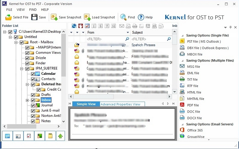 Step 4: A complete OST data preview, including all its folders and emails, will be generated after a quick scan.
