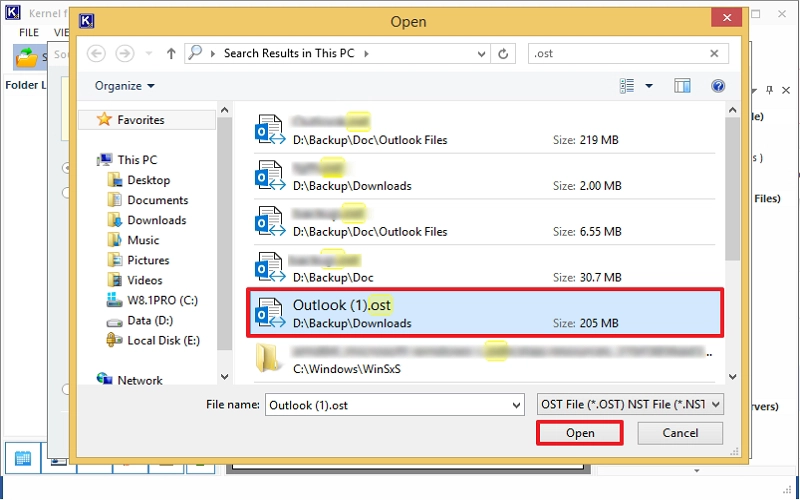 Step 3: Choose the OST file you want to convert. Once selected, click OK.