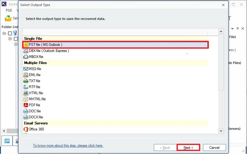 Step 5: Now, click on the Save button and choose the PST file as the saving option. Click Next.